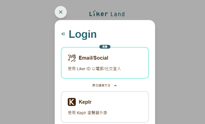 此文檔只適用於 Liker Land 和 LikeCoin v2。如需了解 [3ook.com](http://3ook.com/) 和 LikeCoin v3，請至 [docs.3ook.com](http://docs.3ook.com/) 及 [dao.like.co](https://dao.like.co/)。