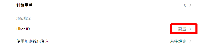 在錢包設定的 Liker ID 點「設置」。